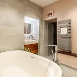 I den här lägenheten finns ett badrum utrustat med hårtorkar, badlakan och handdukar. Du har också tillgång till en separat toalett, en dusch och en tvättmaskin.